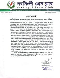 নরসিংদী প্রেসক্লাবে সদস্য পদ থেকে আউয়াল ও সজল বহিষ্কার