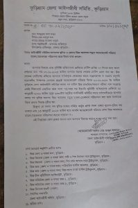 পত্রে আরো উল্লেখ করা হয় শোকজ নোটিশের প্রক্ষিতে আপনার দাখিলকৃত শোকজের জবাব সন্তোষজনক না হওয়ায় তদুপরি প্রয়োজনীয় শিক্ষাগত যোগ্যতা ছাড়াই অ্যাডভোকেট পরিচয়ে বিগত ২৬-১২-২০১৮ ইং তারিখে কুড়িগ্রাম জেলা আইনজীবী সমিতির সদস্য পদ হাসিল উচ্চ মাধ্যমিক/সমমান পরীক্ষা পাশ সংক্রান্ধে একই শিক্ষাবর্ষে একাধিক জাল সনদ পত্র/নম্বর পত্র ইত্যাদি সুনির্দিষ্ট অভিযোগের প্রেক্ষিতে ১২ জানুয়ারী ২০২৬ তারিখ দুপুর ২:৩০টায় অনুষ্ঠিত কার্যনিবাহী কমিটির সভায় সর্বসম্মতীক্রমে আপনার সদস্য পদ স্থগিত করাসহ বিজ্ঞ আদালত সমূহে মামলা-মোকদ্দমা পরিচালনা করা হতে আপনাকে বিরত রাখার সিদ্ধান্ত গৃহীত হয়।