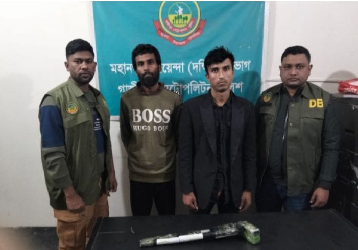 জাতীয় সাপ্তাহিক অন্যায়ের প্রতিবাদ। মোঃ মুজাহিদুল ইসলামঃ গাজীপুর মহানগর পুলিশের গোয়েন্দা (দক্ষিণ) বিভাগের বিশেষ অভিযানে দেশীয় তৈরি শর্টগানসহ ২ জনকে গ্রেফতার করা হয়েছে।বৃহস্পতিবার (১৫ জানুয়ারি) রাতে গোপন সংবাদের ভিত্তিতে টঙ্গী