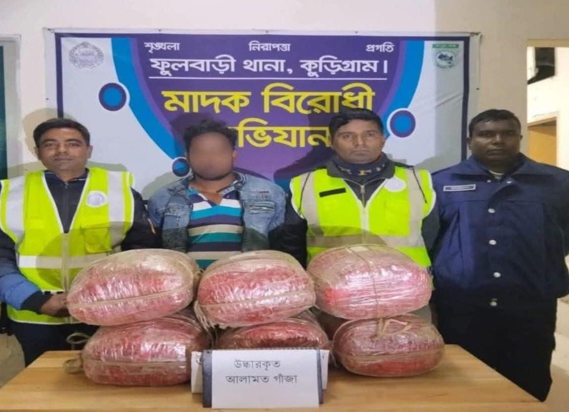 জাতীয় সাপ্তাহিক অন্যায়ের প্রতিবাদ। মোঃ জাকির হোসেন কুড়িগ্রাম প্রতিনিধি। কুড়িগ্রামের ফুলবাড়ীতে মাদকবিরোধী অভিযান চালিয়ে ৩২ কেজি গাঁজাসহ এক মাদক কারবারিকে গ্রেফতার করেছে পুলিশ। সোমবার (১২ জানুয়ারি ২০২৬) দিবাগত রাত আনুমানিক