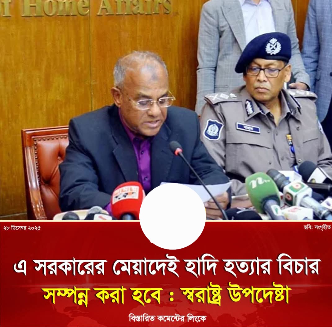 এ সরকারের মেয়াদেই হাদি হত্যার বিচার সম্পন্ন করা হবে বলেন স্বরাষ্ট্র উপদেষ্টা।