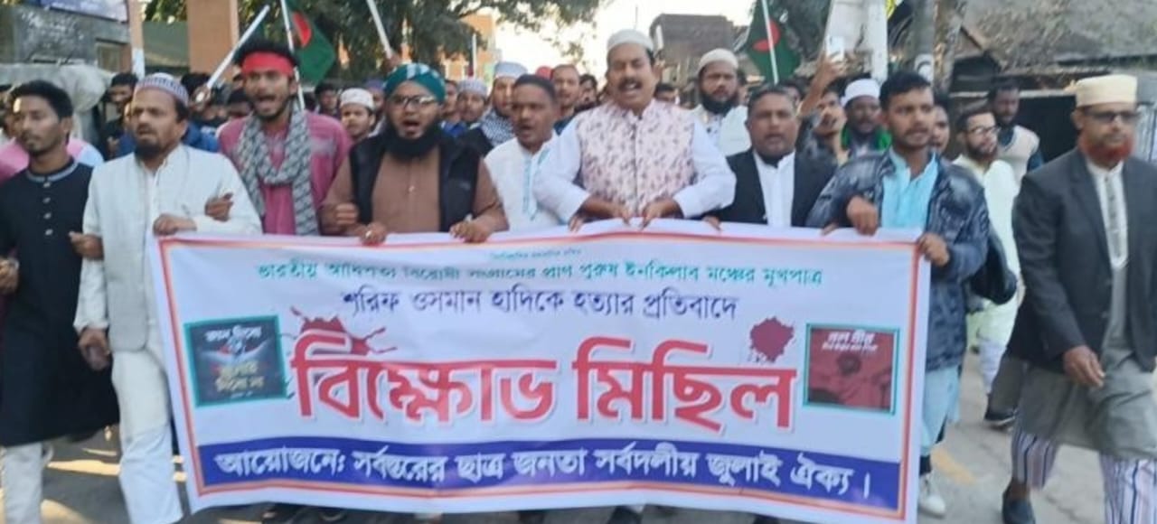 জাতীয় সাপ্তাহিক অন্যায়ের প্রতিবাদ। মোহাম্মদ কামরুল হাসান কাজল কুড়িগ্রাম প্রতিনিধিঃ কুড়িগ্রামের ভূরুঙ্গামারীতে ইনকিলাব মঞ্চের মুখপাত্র শরিফ ওসমান হাদির হত্যাকারীদের দ্রুত গ্রেপ্তার করে ফাঁসির দাবিতে ও ভারতীয় আধিপত্যবাদের প্রতিবাদে বিক্ষোভ মিছিল