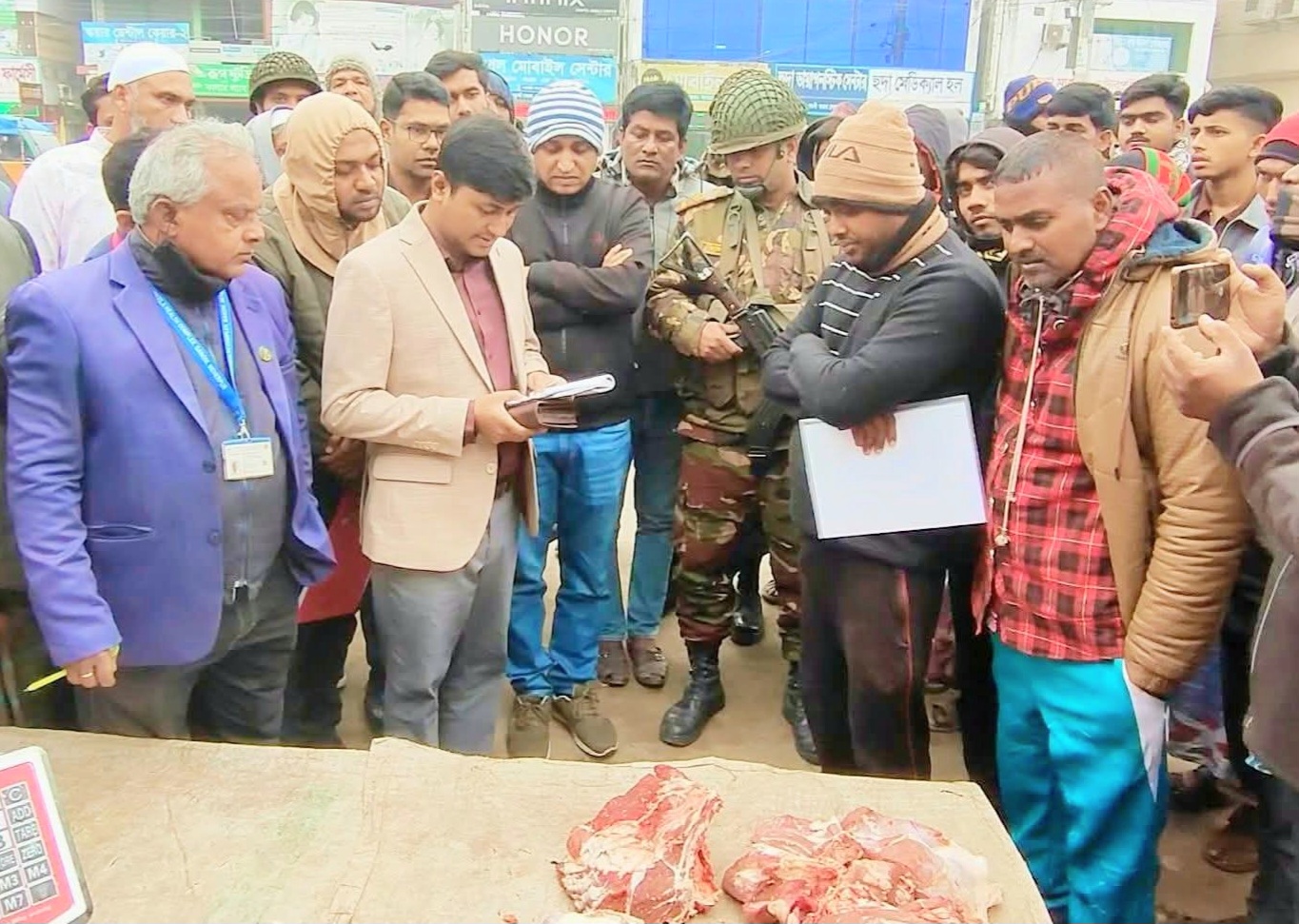 ফ্রিজের মাংস বিক্রি করায় ভ্রাম্যমান আদালতের জরিমানা।