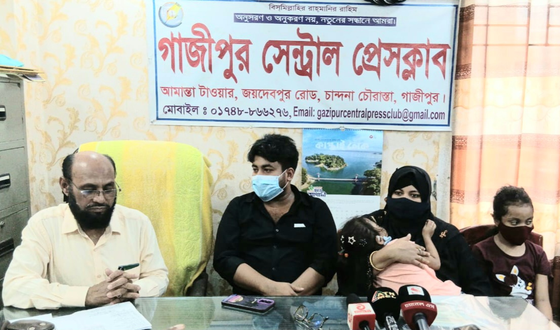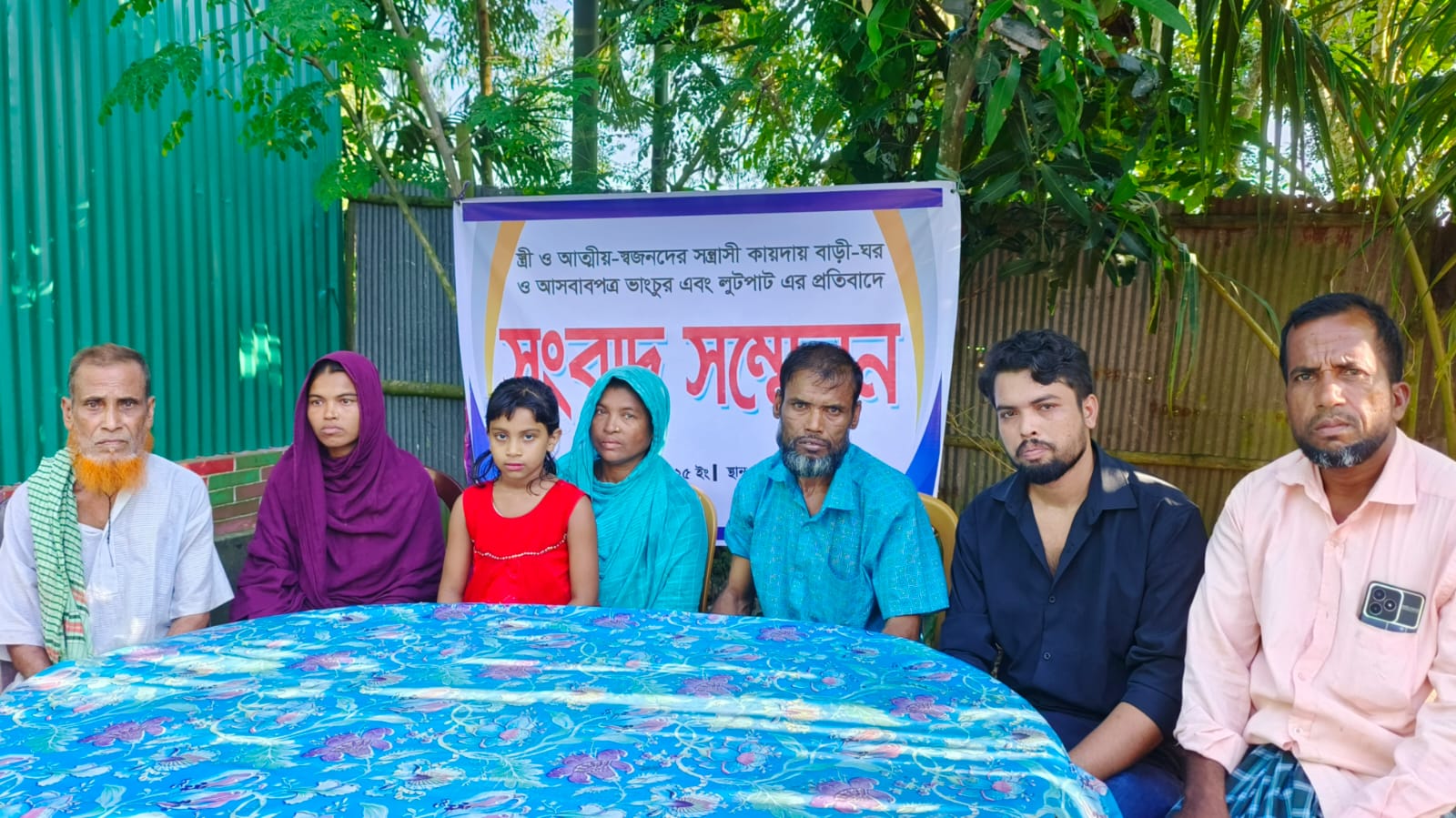 জামালপুরে স্ত্রী ও শ্বশুরবাড়ির লোকজনের বিরুদ্ধে লুটপাট ও ভাংচুরের অভিযোগে সংবাদ সম্মেলন।