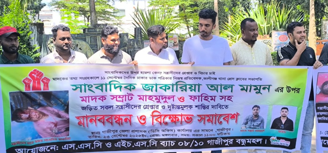 সাংবাদিক জাকারিয়া আল মামুনের উপর সন্ত্রাসী হামলার প্রতিবাদে মানববন্ধন ও বিক্ষোভ সমাবেশ