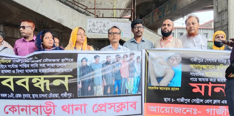 জাতীয় সাপ্তাহিক অন্যায়ের প্রতিবাদ। মোঃ মুজাহিদুল ইসলামঃ গাজীপুরে ধারালো অস্ত্র দিয়ে কুপিয়ে সাংবাদিক আসাদুজ্জামান তুহিনকে নির্মম ভাবে হত্যা ও সাংবাদিক মোঃ আনোয়ার হোসেনকে হত্যার উদ্দেশ্যে ইট দিয়ে থেতলে মারাত্মক আহত