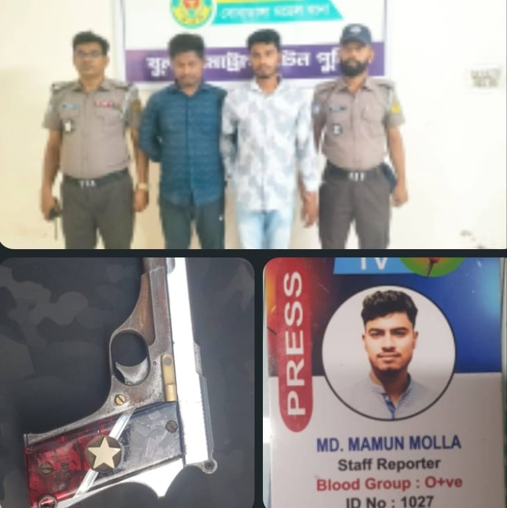 সাংবাদিক পরিচয়ে বিদেশি পিস্তলসহ দুই যুবক আটক।