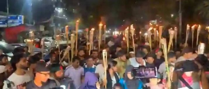 চাঁদাবাজির বিরুদ্ধে বৈষম্য বিরোধী ছাত্র আন্দোলনকারিদের মশাল মিছিল ।