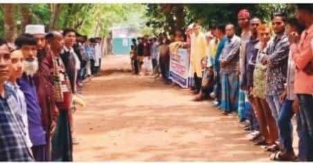 নরসিংদীর পলাশে অনুমোদনহীন ব্যাটারি কারখানা সরিয়ে নিতে বিক্ষোভ ও মানববন্ধন কর্মসূচি।
