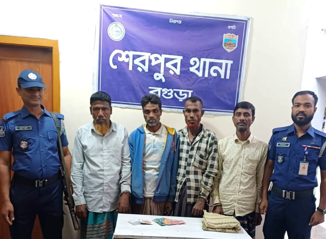বগুড়া শেরপুরে জুয়ার আসর থেকে কৃষকলীগ নেতা সহ ৪ জুয়াড়ী আটক।