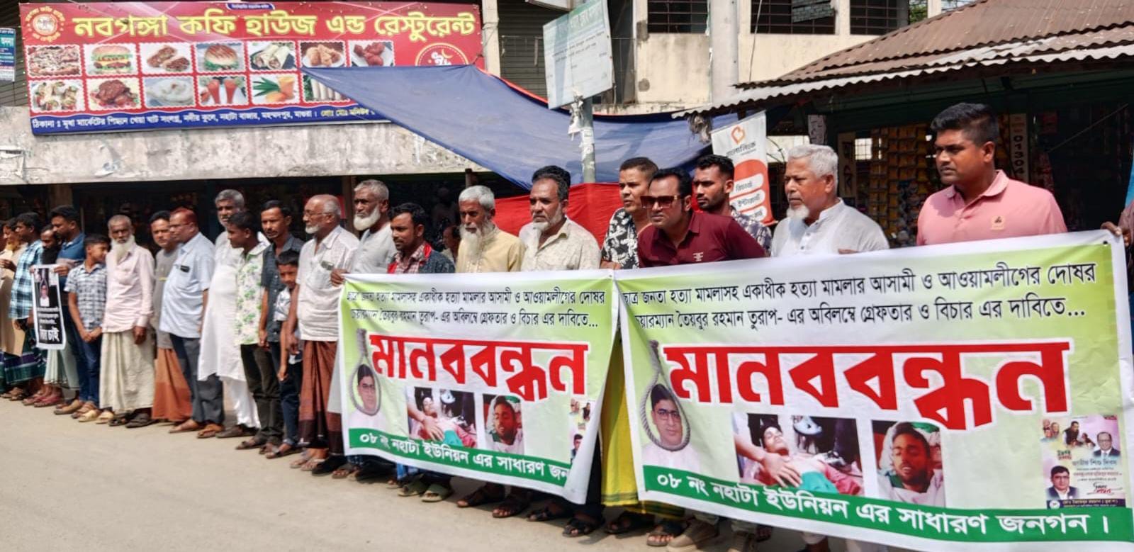 আওয়ামী দোসর চেয়ারম্যান তুরাপের গ্রেফতার ও বিচারের দাবীতে মানববন্ধন।