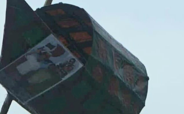 কুড়িগ্রাম ভূরুঙ্গামারীতে আওয়ামী লীগ নেতাকর্মীরা নৌকা বানিয়ে ঝুলিয়ে দিলেন রাস্তায়।