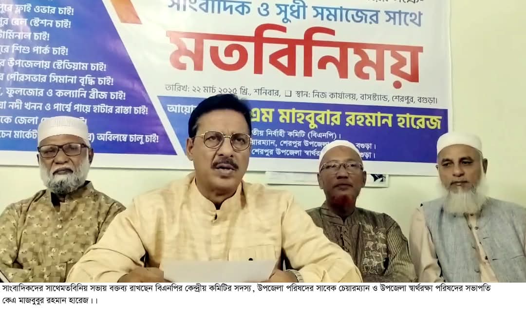 বগুড়া শেরপুরে ১১ দফা দাবি নিয়ে কেন্দ্রীয় বিএনপির সদস্য হারেজের সাংবাদিকদের সাথে মত বিনিময়।
