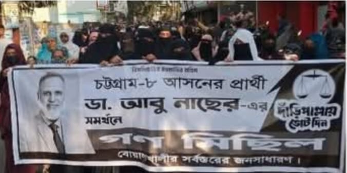 চট্টগ্রাম ৮ আসনে ডা. আবু নাছেরের সমর্থনে বিক্ষুব্ধ জনতার মিছিল।