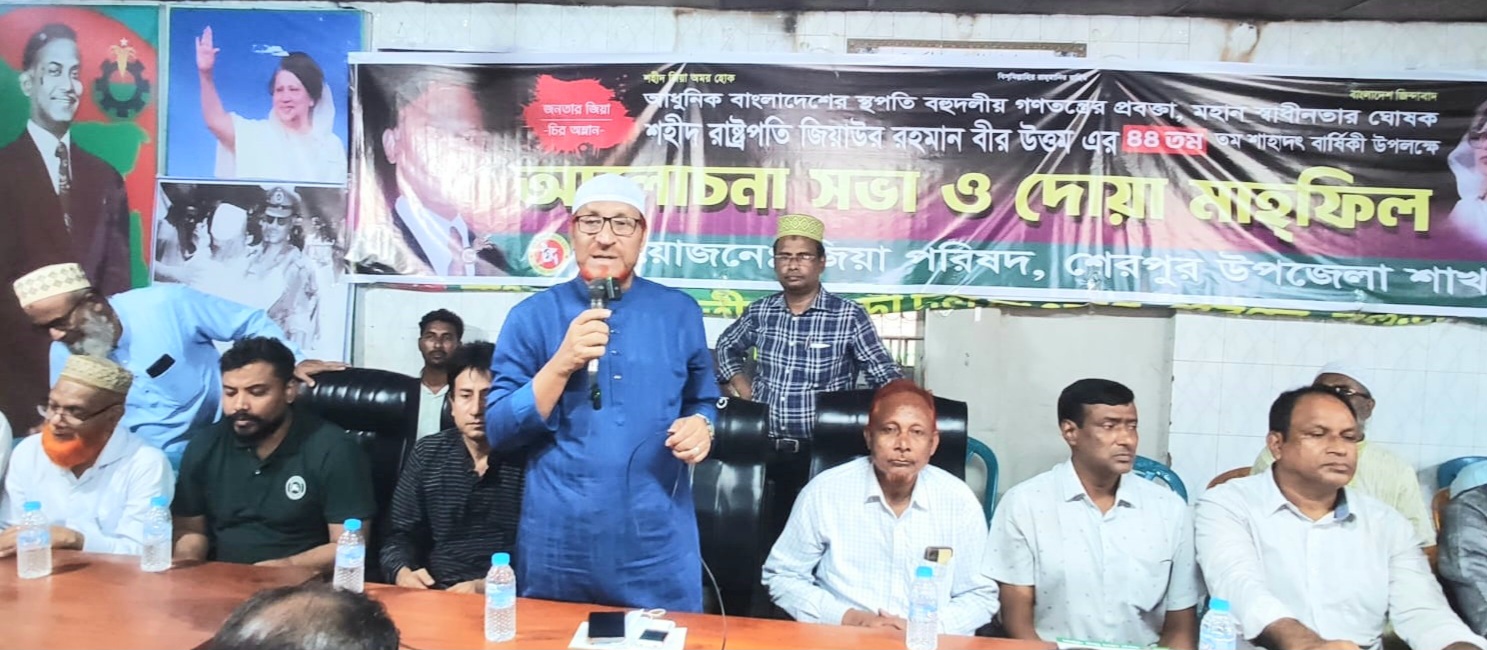 জাতীয় সাপ্তাহিক অন্যায়ের প্রতিবাদ। মোঃ মিজানুর রহমান শেরপুর (বগুড়া) : জিয়া পরিষদের বগুড়ার শেরপুর উপজেলা শাখার উদ্যোগে বহুদলীয় গণতন্ত্রের প্রবক্তা, আধুনিক বাংলাদেশের রূপকার, মহান স্বাধীনতার ঘোষক, শহীদ প্রেসিডেন্ট জিয়াউর রহমানের