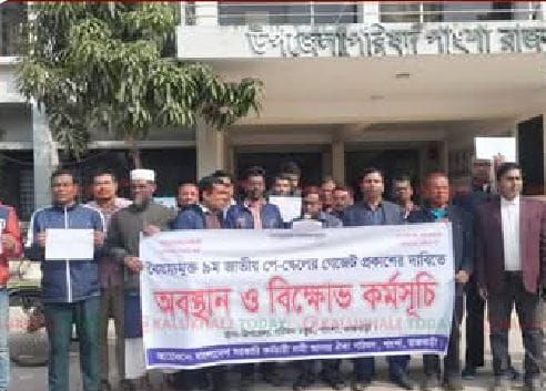 রাজবাড়ীর পাংশায় পে-স্কেলের গেজেট প্রকাশের দাবিতে অবস্থান ও বিক্ষোভ।
