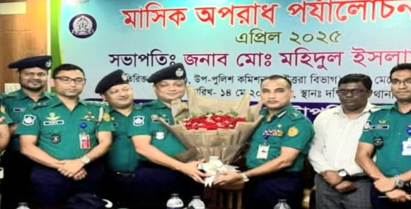 জাতীয় সাপ্তাহিক অন্যায়ের প্রতিবাদ। মোঃ মুজাহিদুল ইসলামঃ ঢাকা মহানগর উত্তরা ক্রাইম বিভাগের ২০২৫ সালের এপ্রিল মাসের অপরাধ পর্যালোচনা সভায় দৃষ্টান্তমূলক অপরাধ দমন কার্যক্রম পরিচালনার জন্য উত্তরা পশ্চিম থানার অফিসার ইনচার্জ