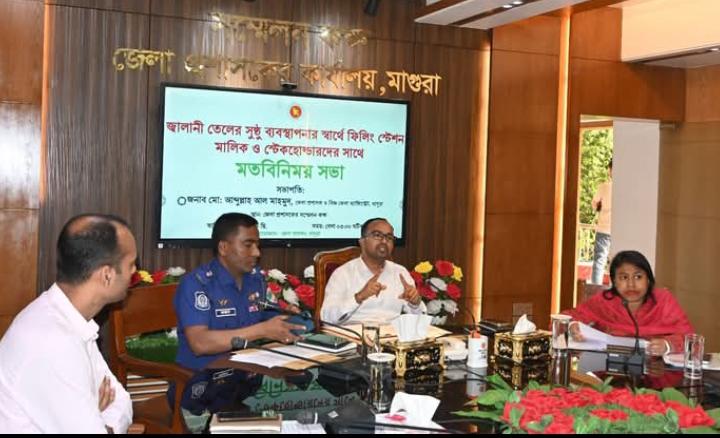 জাতীয় সাপ্তাহিক অন্যায়ের প্রতিবাদ। তৌহিদ, মাগুরা। জ্বালানী তেলের সুষ্ঠু ব্যবস্থাপনা নিশ্চিতকরণে ফিলিং স্টেশন মালিক ও স্টেকহোল্ডারদের সাথে মতবিনিময় সভা করেছে মাগুরা জেলা প্রশাসন। জ্বালানী তেলের সুষ্ঠু ব্যবস্থাপনা, স্বাভাবিক সরবরাহ নিশ্চিতকরণ