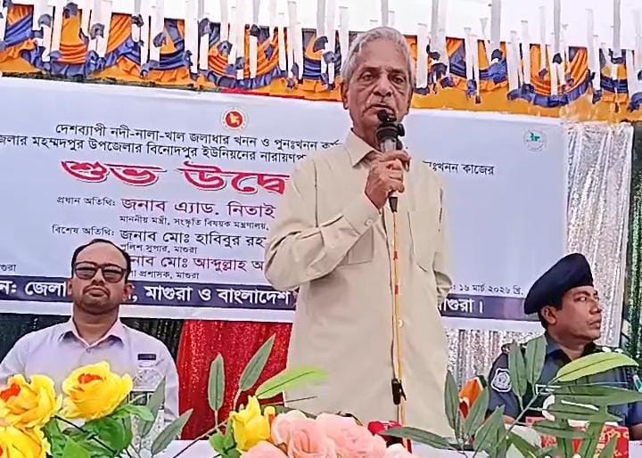 জাতীয় সাপ্তাহিক অন্যায়ের প্রতিবাদ। তৌহিদ,মাগুরা। দেশব্যাপী নদী নালা খাল জলাধার খনন ও পুন:খনন কর্মসূচির অংশ হিসেবে সোমবার ১৬ মার্চ সকাল ১১ টায় মহম্মদপুর উপজেলার বিনোদপুর ইউনিয়নের নারায়ণপুর খালের পুনঃ খননের