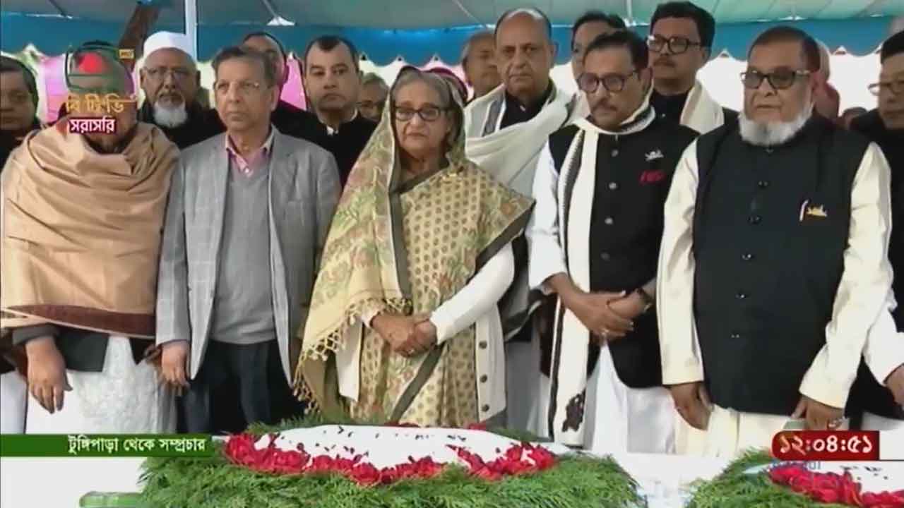 গোপালগঞ্জে বঙ্গবন্ধুর সমাধিতে মন্ত্রিসভার সদস্যদের নিয়ে প্রধানমন্ত্রীর শ্রদ্ধা