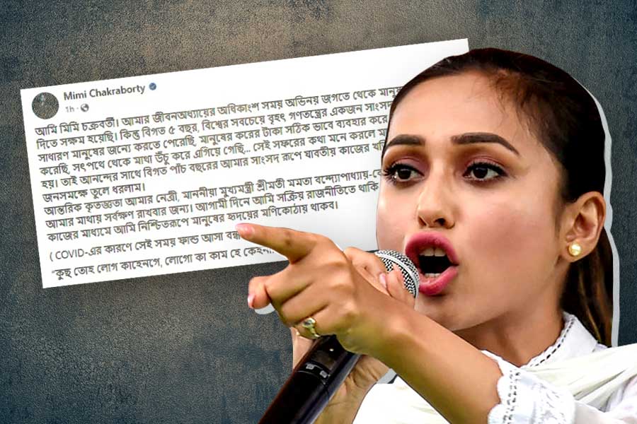 অভিনয়ের পাশাপাশি রাজনীতিতেও বেশ সরব ওপার বাংলার দর্শকপ্রিয় অভিনেত্রী মিমি চক্রবর্তী। তৃণমূল কংগ্রেসের হয়ে সংসদ সদস্যও হয়েছেন এই অভিনেত্রী। তবে এবার রাজনীতি থেকে পুরোদমে সরে দাড়াচ্ছেন এই নায়িকা। ইতিমধ্যে সংসদ